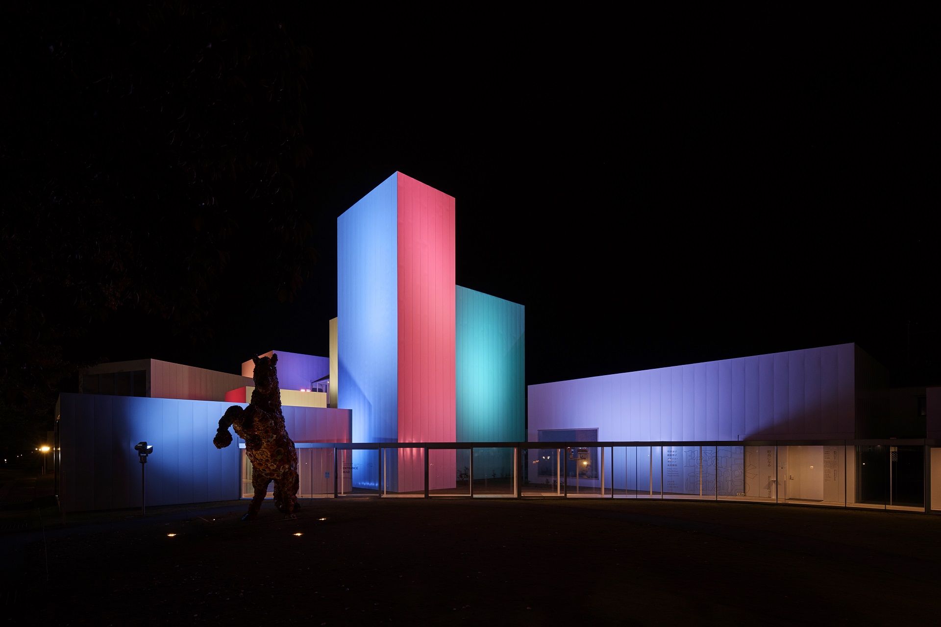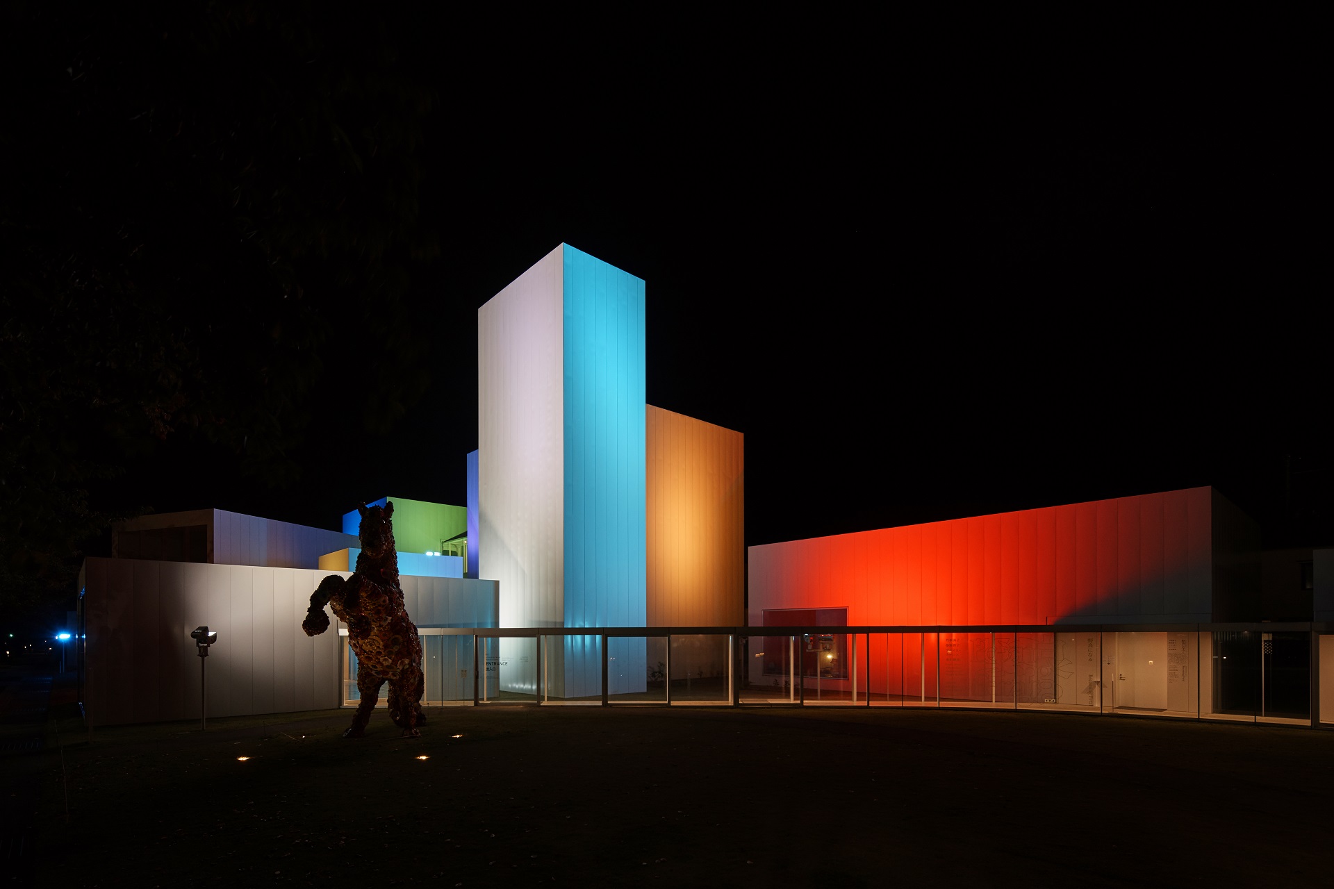 それらの白い壁を、十和田の自然から着想した多彩な色で照らし、